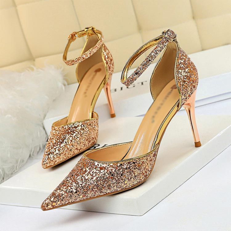 ハイヒール ピンヒール 結婚式 キラキラ シルバー 7.5センチ 9 cm パンプス レディース 黒 二次会 ストラップ ブラック ゴールド パーティー 痛くない 歩きやすい 大き yskma 605078