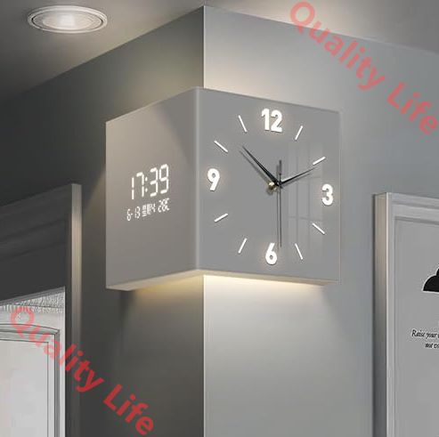 両面時計 デジタル リビング 壁掛け センサースイッチグロー明るいデジタルコーナー壁掛け と温度と湿度表示を搭載 ホームクリエイティブデコレーション振り子多機能西海岸スタイル 40*40*40 cm PSE認証济