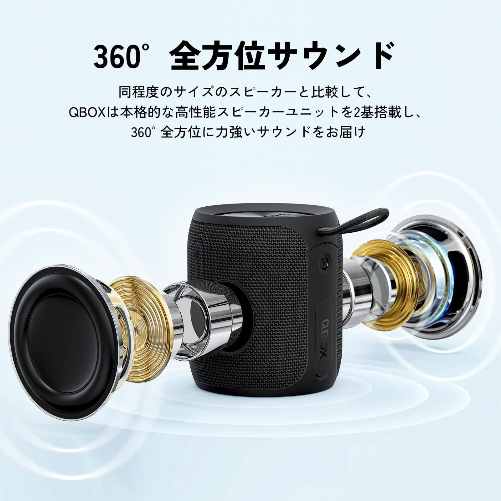 【360°ステレオサウンド&強化された低音】:マグカップサイズの小型ながら、強化された2つの高性能8Wドライバーを搭載し、合計16Wの大出力でさらに迫力あるHIFIサウンドが楽しめます。Bassboomアルゴリズムに加え、デュアルパッシブラジエーターにより迫力と深みのある低音を再生できます。