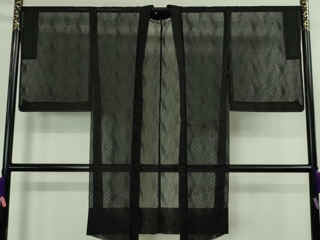 平和屋着物 上 長羽織 スリーシーズン 春夏秋 塵除け シルクオーガンジー よろけ縞紋紗 黒地 kh 5