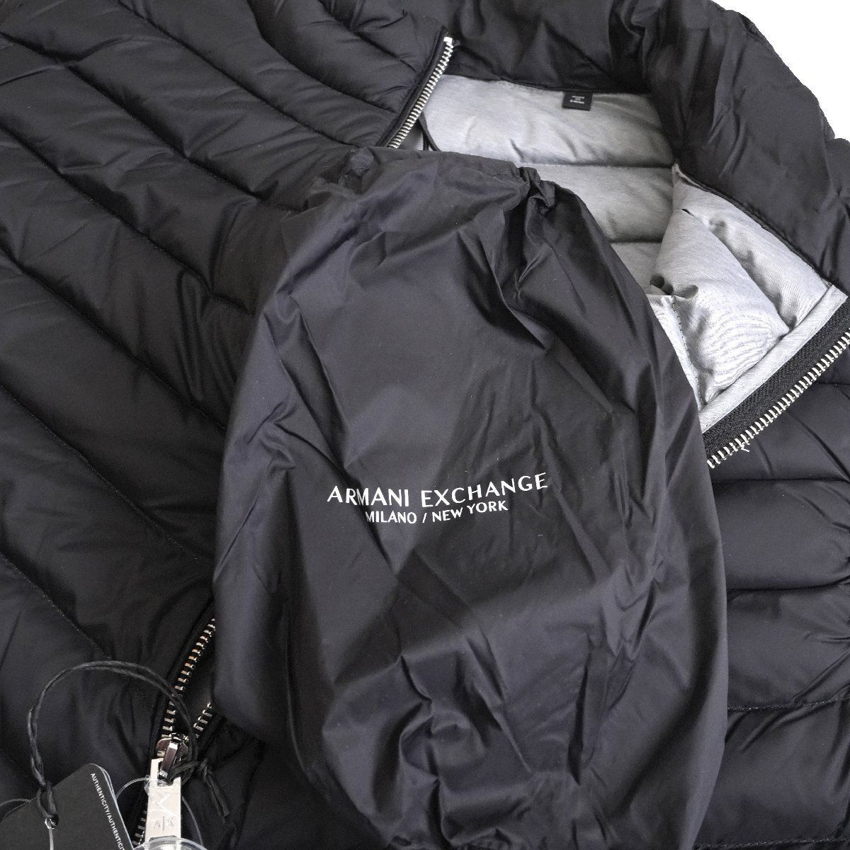 2026 A X ARMANI EXCHANGE アルマーニ エクスチェンジ ロゴ ライトダウンベスト ポケッタブル ブラック 黒 Lサイズ ポーチ付き 携帯 パッカブル トランスフォーム