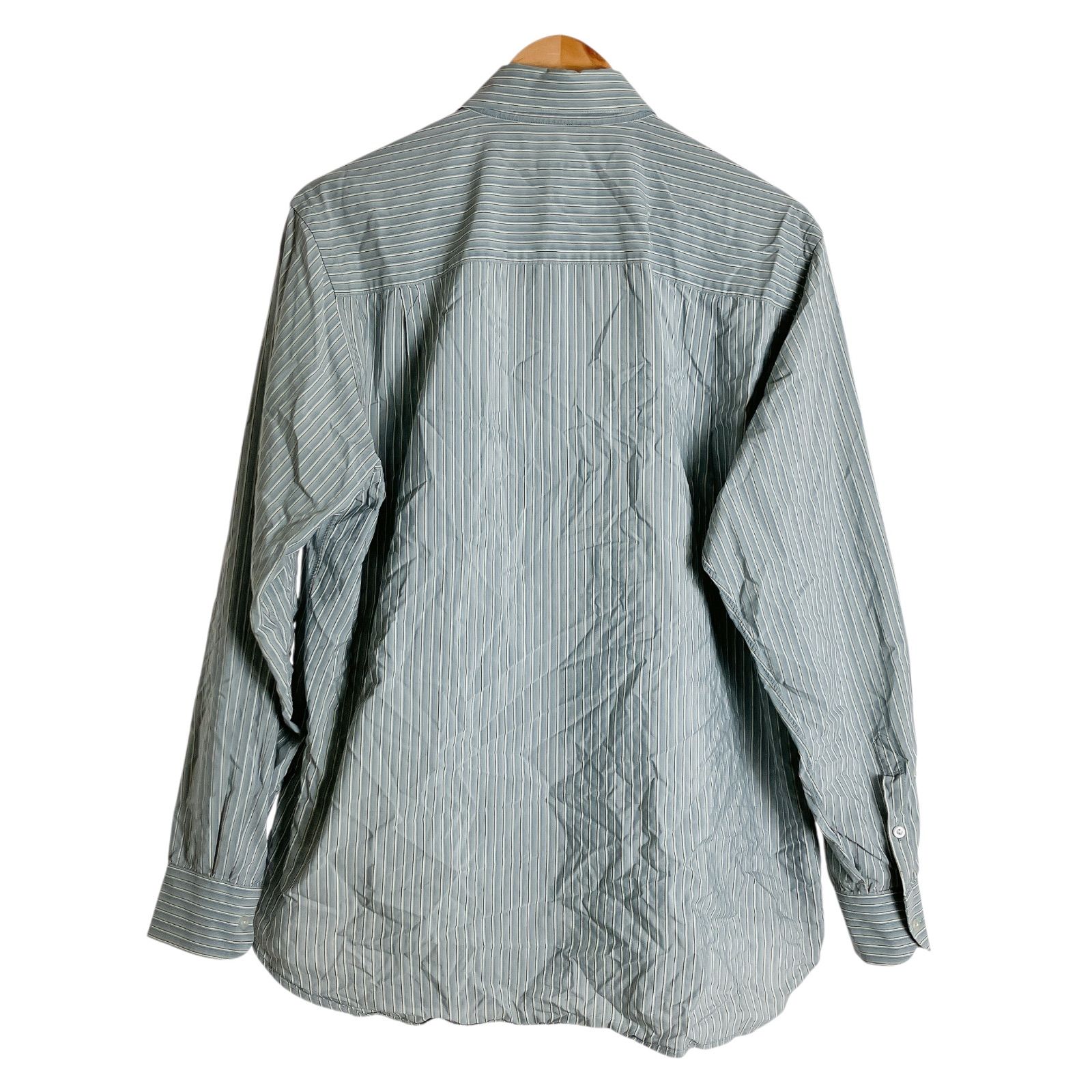 ATK 1 GIORGIO ARMANI ジョルジオアルマーニ ストライプシャツ 長袖 水色系 茶線 メンズ トップス 41|16 Lサイズ相当