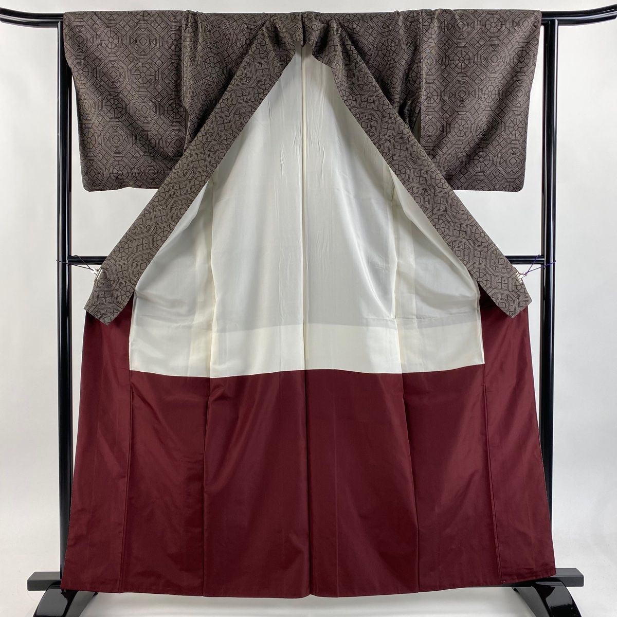 紬 身丈162.5 cm 裄丈63 S 袷 幾何学模様 焦茶色 正絹 秀品