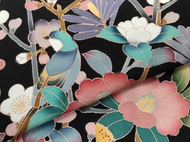 平和屋着物 豪華黒留袖 友禅 作家物 立波枝花鳥文 正絹 vf
