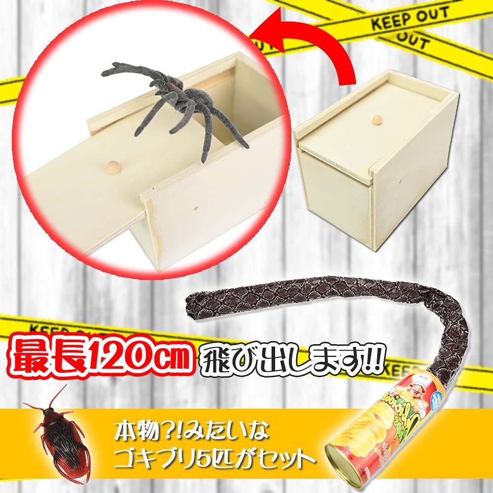 【セット内容】ビックリ箱(クモ)×1個 ポテチケース(ヘビ)×1個 ゴキブリ×5個 【サイズ】詳しくは、画像をご確認下さい。