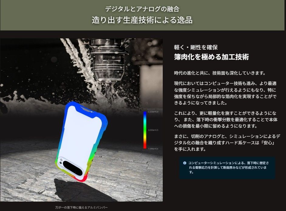 ●3次元切削加工と30種類以上の専用加工ツールを駆使して仕上げられた特別なアルミ保護バンパーケース