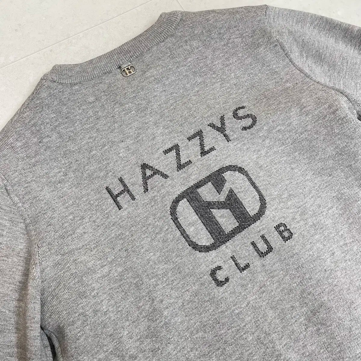 前面には小さくてさりげないブランドロゴ、背面には「HAZZYS CLUB」のロゴポイントがあります