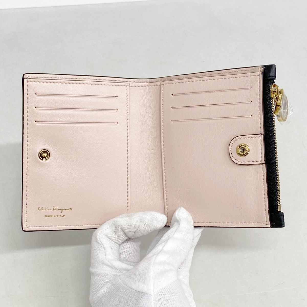 5 id 4971 サルヴァトーレフェラガモ 財布 ガンチーニ レザー ブラック ピンク ゴールド金具 レディース