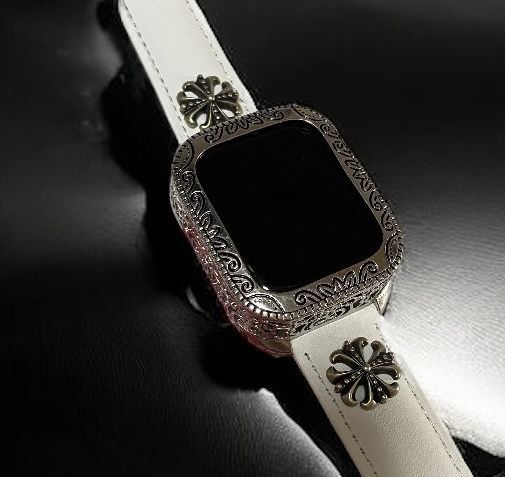 重厚感あふれる彫刻調のメタルカバーと、上質な牛本革を使用したレザーバンドを組み合わせた、Apple Watch専用のラグジュアリーカスタムセットです。