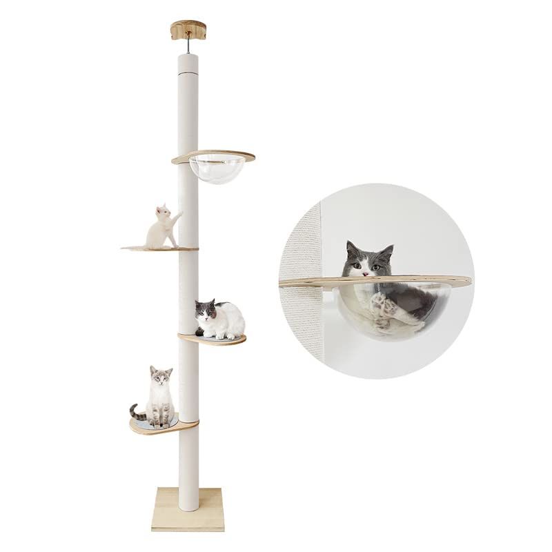 ホワイトコットン素材:ポールはホワイトコットン素材で包まれており、臭いやホコリの心配はありません。猫ちゃんが爪とぎをするのに最適で、家具や壁の破壊を防ぐ役割も果たします。色合いも魅力的で、部屋にも馴染みやすく、インテリアとして素晴らしいです。