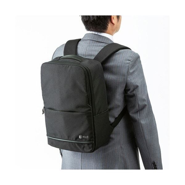 ●15.6型ワイドまでのノートパソコンに対応したスクエア型バックパック、色はブラックです。