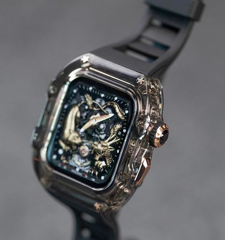 44 mm ローズ-スモークブラック アップルウォッチバンド ラバーベルト カバー Apple Watch クリア ケース 4 5 6 7 8 se スポーツ メンズ レディース