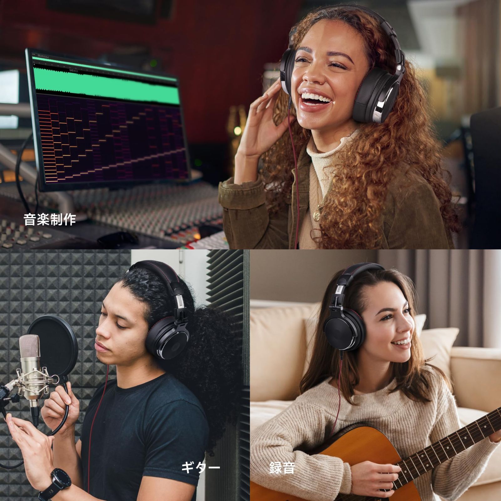 OneOdio Pro 50 ハイレゾ ヘッドホン 有線 mmドライバー プロフェッショナル モニターヘッドホン DJ用 密閉型 スタジオ用 楽器練習 ミキシング TV視聴 映画鑑賞 黒