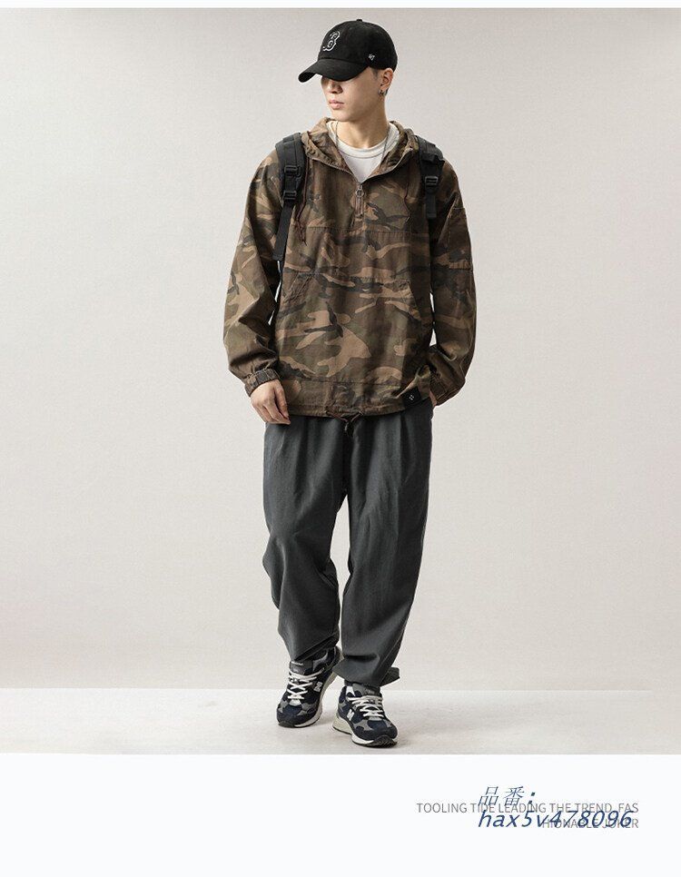 ミリタリージャケット メンズ カモフラージュ 迷彩柄 ハーフジップ フード付き ジャケット ゆったり アメカジスタイル プルオーバーかっこいい hax 5 v 478096